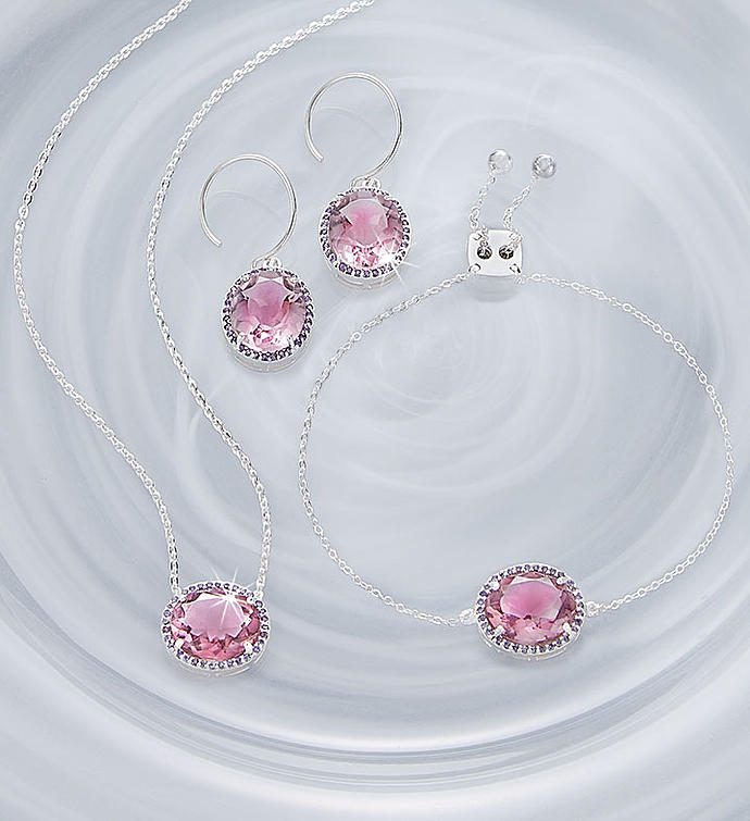 She’s beautiful inside and out. Celebrate a special woman with our lavender jewelry from Amelia Rose. The soft, shimmering beauty of faceted quartz is outlined in sparkling, crystal-like accents and set in sterling silver. Available individually, or as a matching necklace, bracelet and earring set, these are the perfect day-to-night pieces for capturing her elegant style.