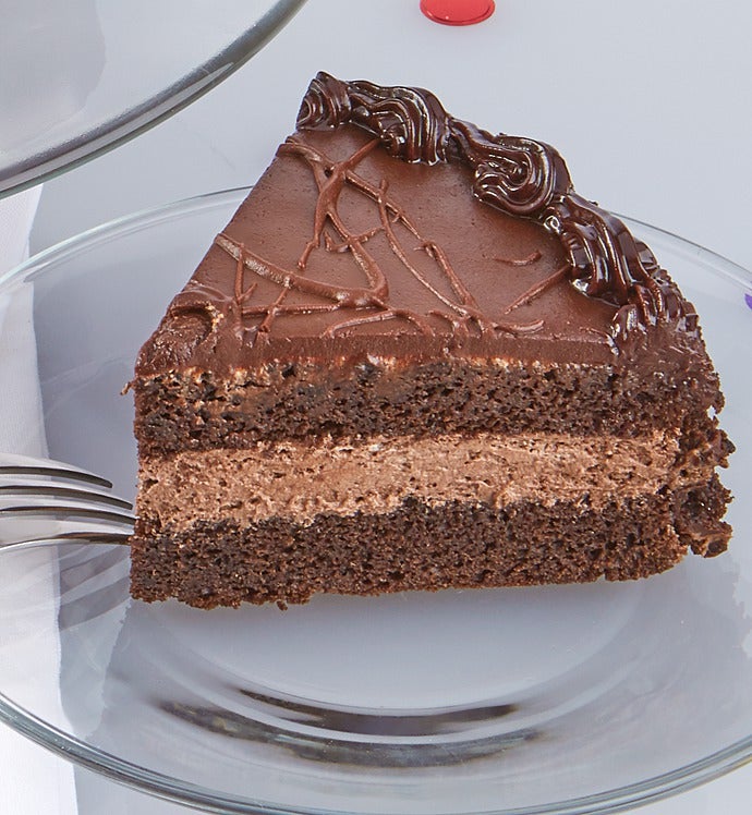 Birthday Heaven in a box! Two rich, chocolate cake layers are filled with luscious chocolate whipped cream mousse, then covered with chocolate fudge frosting. This best selling delight is then garnished with chocolate curls and includes a festive Happy Birthday milk chocolate plaque. Each cake is a celebration in itself! Ships overnight and arrives in an elegant gift box.