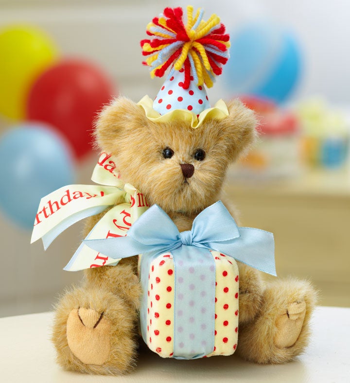 Always dressed and ready to party, this cuddly birthday cub comes bearing gifts! With signature soft features and a distinct design that lets you know, "It MUST be a Bearington,” he arrives ready to party with a festive hat and bow around his neck, and paired with Cheryl's signature "Sending Sweet Smiles" flower-shaped sugar cookies. All together, this is one fun birthday surprise that’ll have them smiling ’til next year!