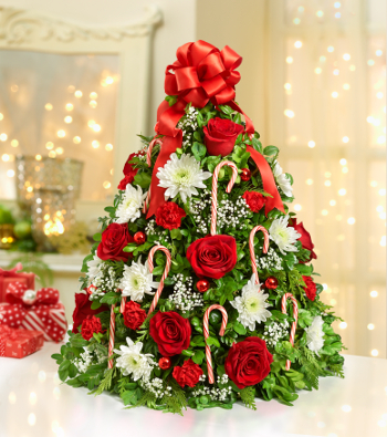 I love Christmas! And I love decorating Christmas trees. The main tree in my home tends to be pretty traditional, changing only slightly from year to year, with new ornaments added here and there. So what I want to talk about is the beauty and versatility of fresh tabletop Christmas trees. These beautiful arrangements are usually handcrafted by your local florist and make great gifts. As a matter of fact, the Holiday Flower Tree® has been a best seller since it was first introduced by 1-800-Flowers over 15 years ago!!