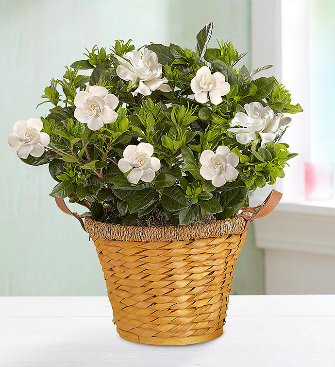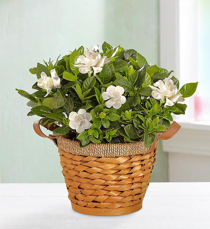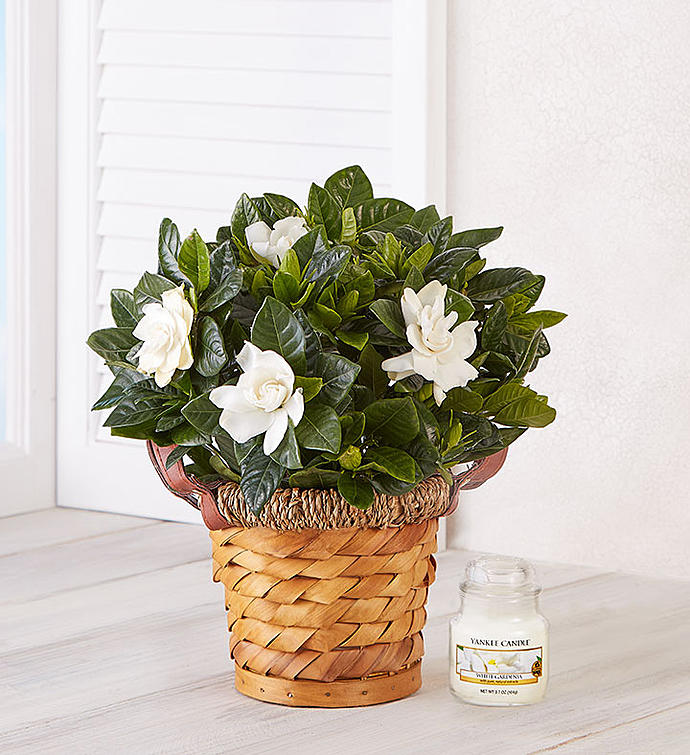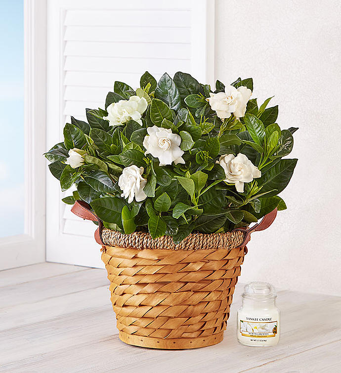 Watch smiles bloom with our graceful and fragrant gardenia plant. Available in multiple sizes, it arrives budding and beautiful with glossy green leaves in our charming, woven basket planter. Revealing creamy, white blooms, it’s just the plant to bring lasting beauty and enjoyment. Cultivate even more joy by adding our gardenia-scented Yankee Candle®.