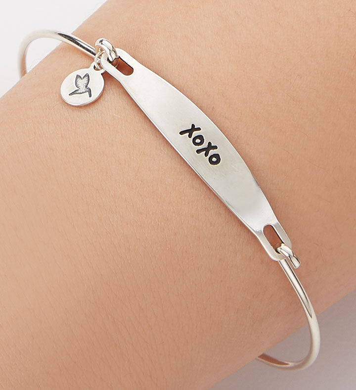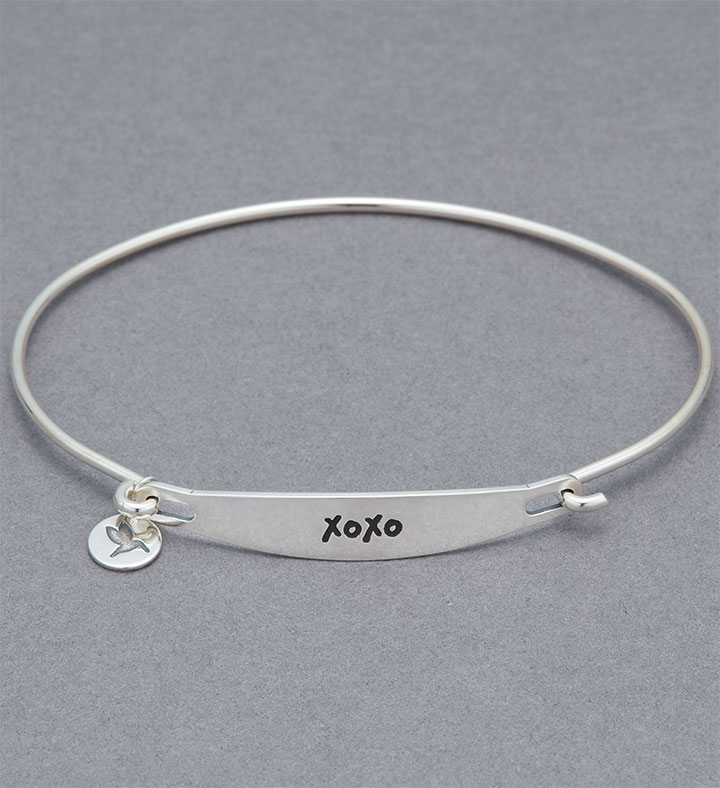 Adorn her wrist with a hug and a kiss. Our beautiful bangle bracelet from Chamilia is crafted in lightweight sterling silver and features an “XOXO” sentiment. A decorative hanging charm adds to its sweetness. Perfect as a birthday or anniversary gift…or an out-of-the-blue romantic surprise.
