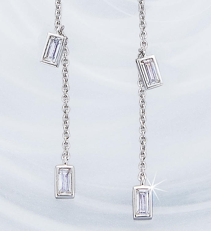 Crafted from the highest quality white zirconia, this exquisite day-to-night set strikes the perfect balance between modern and elegant. Designed by CRISLU, they flaunt glittering bezel-set round stones on a delicate chain, with larger baguette stones dangling off, for all-out drama.
