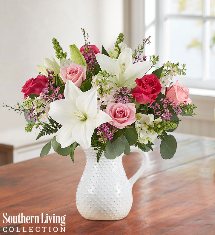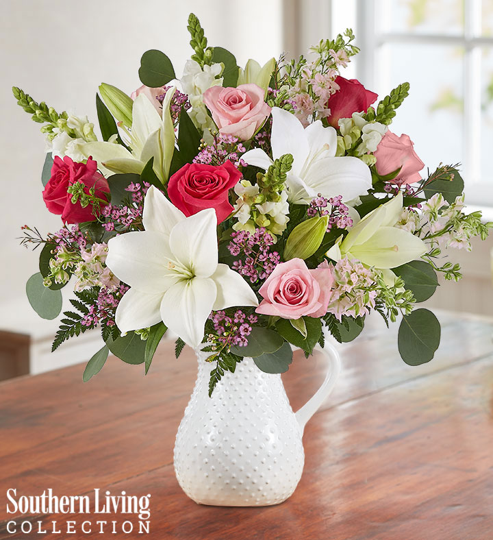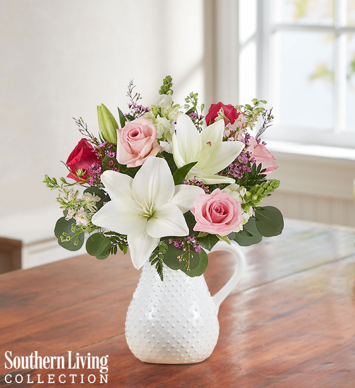 LOCAL ARTISAN EXCLUSIVE Every day calls for a delightful bouquet! Just ask Sophie Clary from 1-800-Flowers in Oklahoma City, who created this exclusive. A mix of pink and white blooms for a delicate touch of color, she’s designed it in our Timeless Treasure pitcher that features a Swiss Dot design full of vintage appeal. For celebrating, entertaining or just plain enjoying, it’s a gift that’s as sweet as the sentiment behind it.