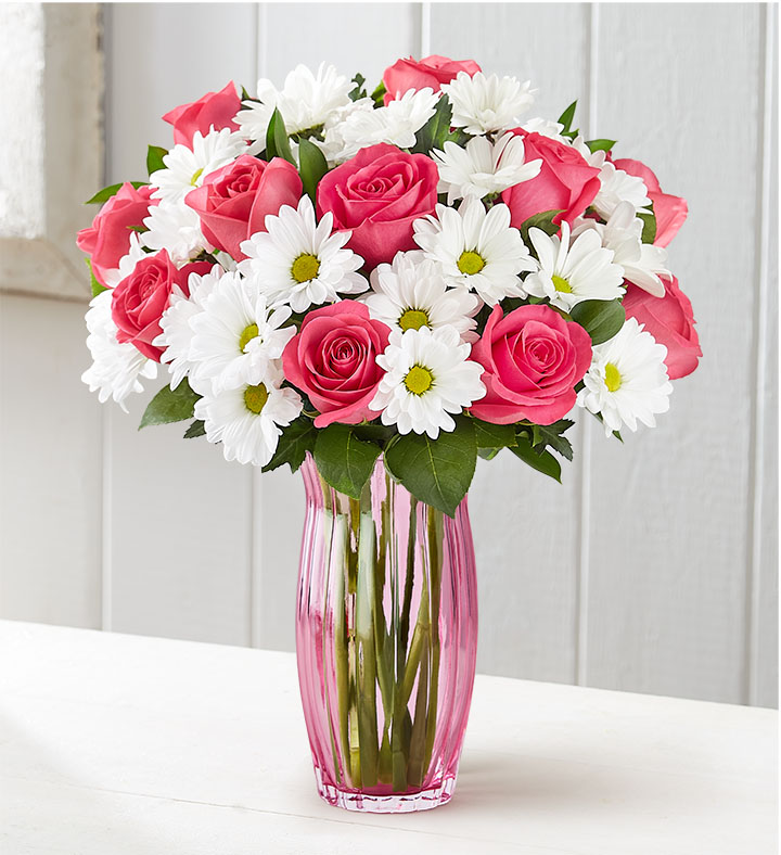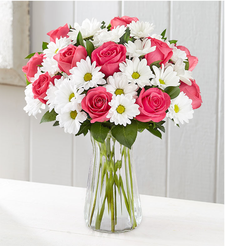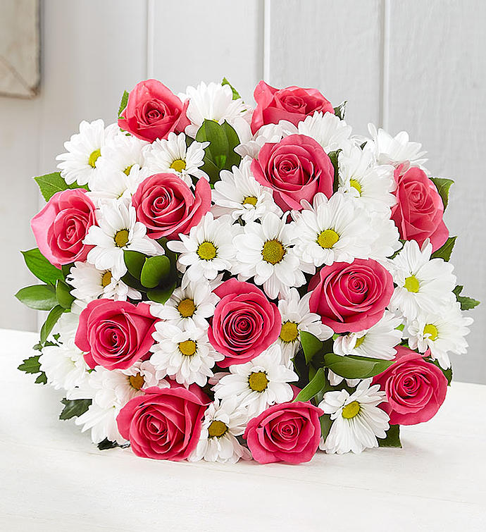 Turn any day into one they’ll remember with this gorgeous gift of blooms. Our hot pink roses create a bold pop of color against sweet white daisies. It’s a just-right bouquet for big moments and out-of-the-blue surprises.
