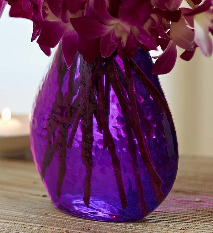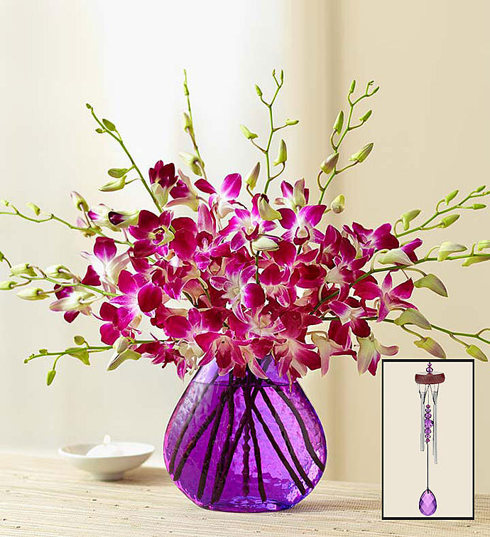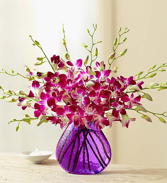 Our rich purple orchids bring on the breezy beauty of a tropical day. Fresh and long-lasting, this eye-catching Dendrobium bouquet is a piece of paradise they’ll always remember. Send a bouquet of 10 or double the delight with 20 colorful blooms.