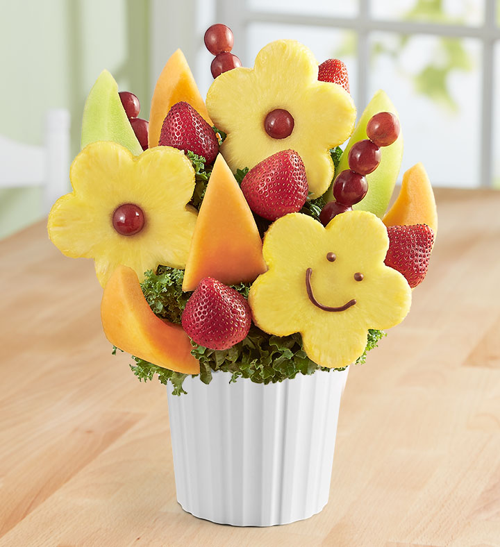 This fruit-filled sensation will have them smiling from ear to ear! Loaded with plump, dipped strawberries, mouthwatering melon and the happiest daisy-shaped pineapples around, it’s got all the right ingredients for celebrating a special day, lifting somebody’s spirits…or savoring for yourself.
