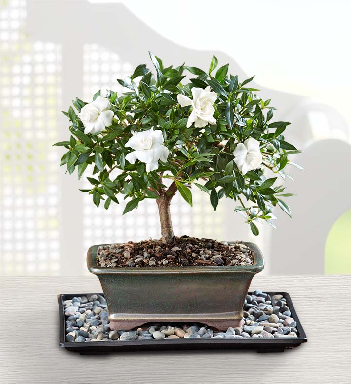 With its serene beauty and alluring fragrance, our gardenia bonsai brings elegance and style to any space. Grown by our plant experts, this traditional bonsai has a sculptural design, which highlights its graceful white blooms. Arriving in bud form, it will bloom into full beauty between March and June.