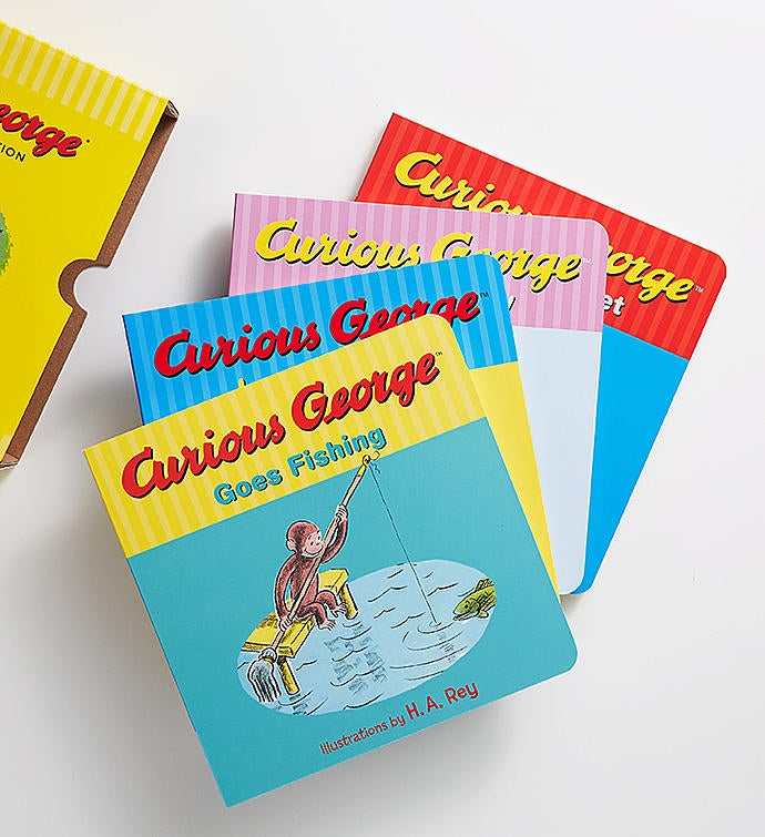 Introduce a curious young child in your life to the classic tales of one very lovable and mischievous monkey! Our Curious George gift set includes a cuddly plush Curious George Gund™ monkey, dressed in his signature red t-shirt. He’s joined by a collection of four beloved board books, with the original art beautifully restored and redesigned for a modern look. Perfect for story time or bedtime, this cherished collection will delight a new generation of fans, as it has for more than 75 years.