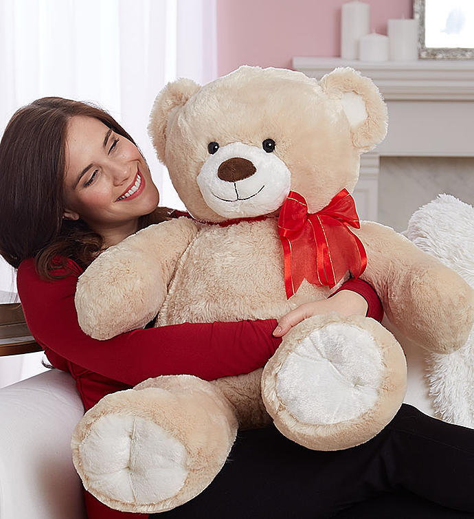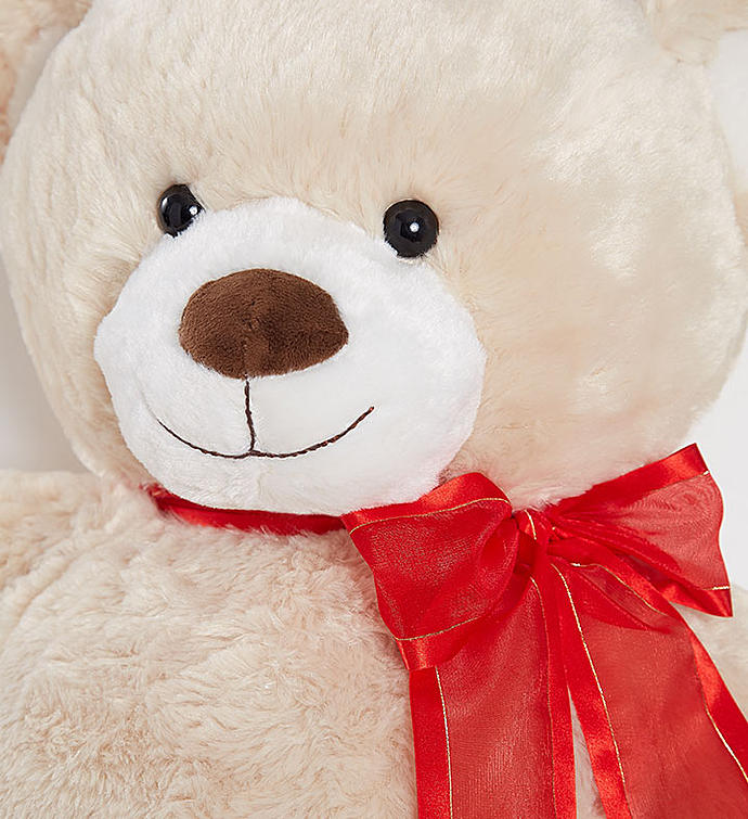 EXCLUSIVE Part of our Lotsa Love® plush collection, our cuddly Big Bear is the perfect gift for someone with an even bigger heart. Measuring over 2.5 feet tall, our lovable golden brown plush bear wears a festive red ribbon with gold metallic accents. For a truly special surprise, add a box of chocolates and our unique Message in a Bottle keepsake with a heartfelt note to let them know how much you care.