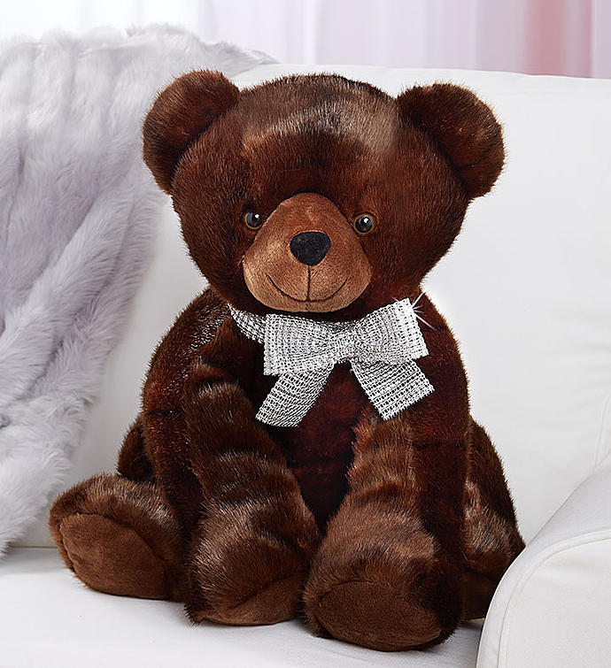 Part of our exclusive Lotsa Love plush collection, our luxury Sable Bear™ will capture your sweetie’s heart. Featuring ultra-soft faux mink fur, our elegant plush is adorned with a dazzling rhinestone silver bow for a glamorous touch.