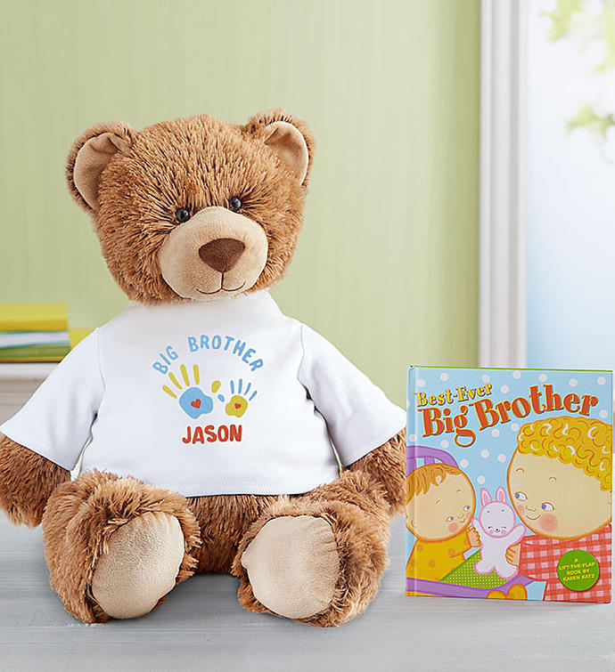 EXCLUSIVEOur ultra-plush bear delivers big on big brother smiles! A new addition to our exclusive Lotsa Love® plush collection, Tommy Teddy arrives wearing a white T-shirt and features a handprint graphic with the words BIG BROTHER. Personalize it with the name of the lucky soon-to-be older sibling to make it extra special. Send Tommy alone... or with the inspiring “Best Ever Big Brother” book.