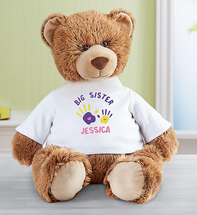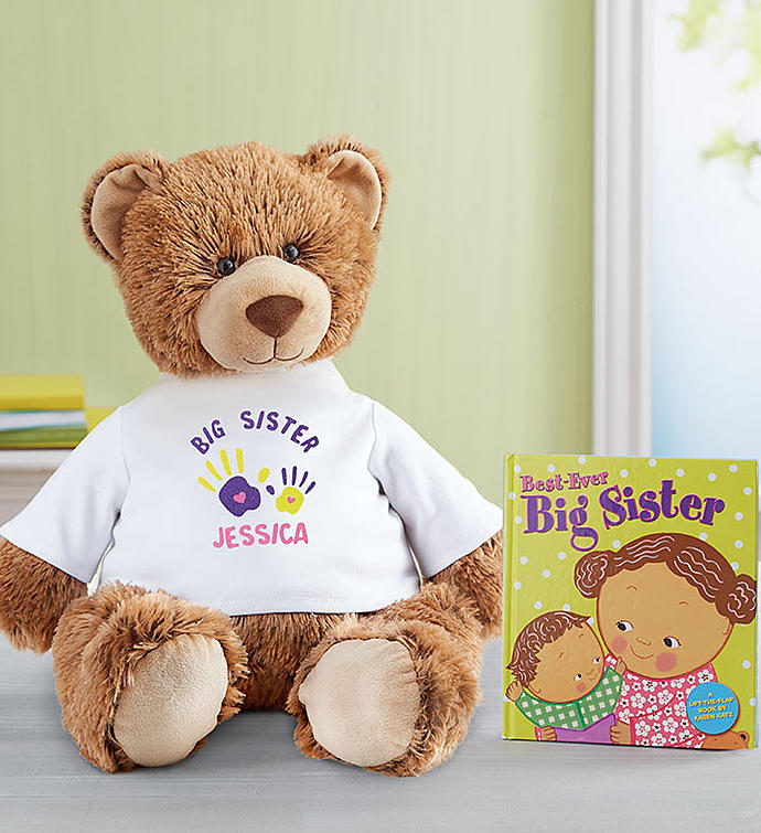 EXCLUSIVEOur ultra-plush bear delivers big on big sister smiles! A new addition to our exclusive Lotsa Love® plush collection, Tommy Teddy arrives wearing a soft white T-shirt featuring a handprints graphic with the words BIG SISTER. Personalize it with the name of the lucky, soon-to-be older sibling to make it extra special. Send Tommy alone... or with the inspiring “Best Ever Big Sister” book.