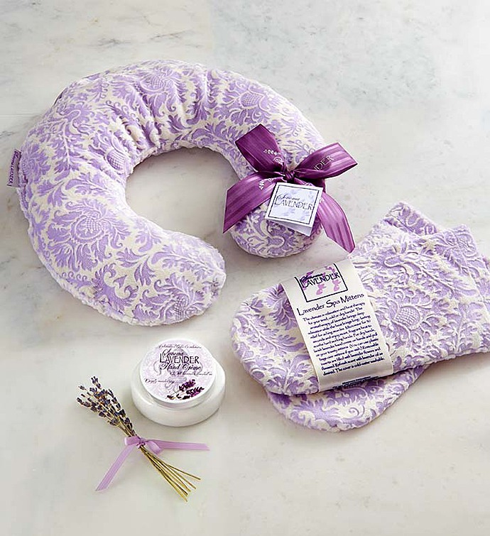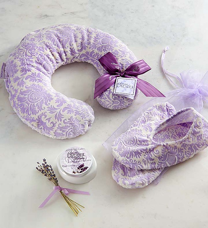 Pamper them from head to toe with our luxurious spa set from Sonoma Lavender, part of our ‘Love Lavender’ collection. A plush neck pillow is filled with aromatic lavender and flax seed which can be warmed or cooled and used to melt their tension and troubles away. Next, include a slipper or mitten set—or both—with coordinating moisturizing creams to help them relax while improving circulation. It’s a truly unique and thoughtful gift to indulge someone very special.