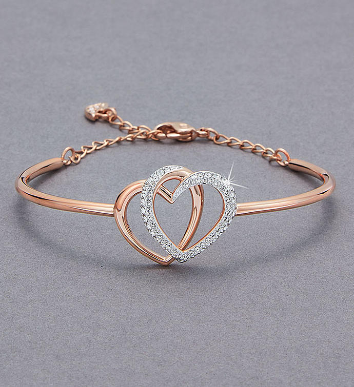 Watch her eyes light up with our stunning Interlocking Hearts jewelry set from the masters at Swarovski®. The matching necklace and bracelet, in either silver or silver and rose gold tone, display a sleek, entwined heart design – a symbol of enduring unity and love – featuring sparkling clear crystals set in classic pavé. Send an individual piece, or bundle them together for an unforgettable keepsake gift for Valentine’s, anniversaries or any day!