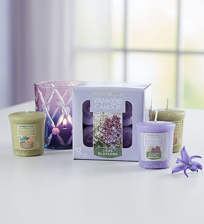 Treat someone special to a relaxing retreat right in their own home. Our Yankee Candle® gift set comes complete with a radiant votive holder, votive candles and tea lights in a variety of alluring and heady aromas to create the perfect peaceful ambiance. Send this soothing gift to their home for any occasion - or just to make them smile!
