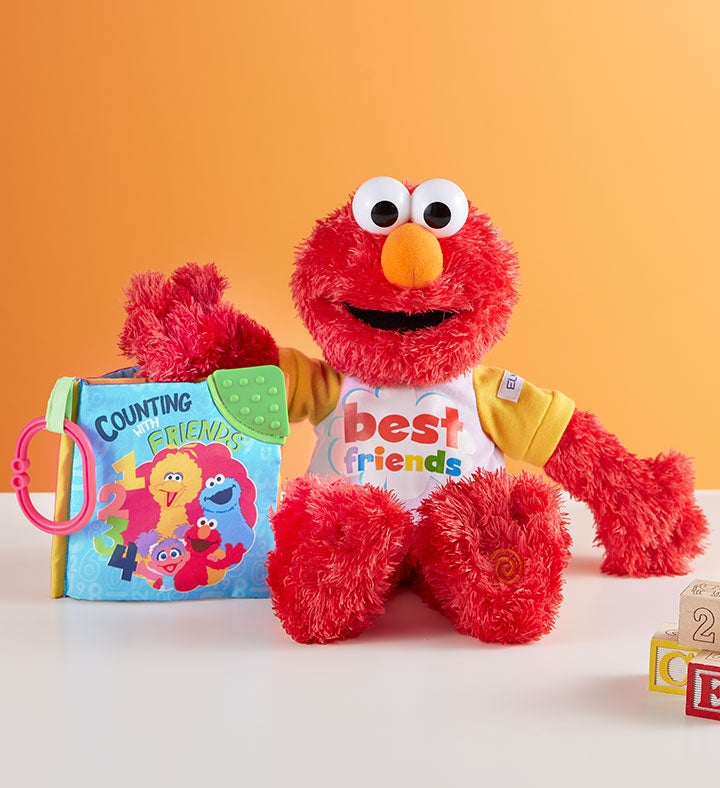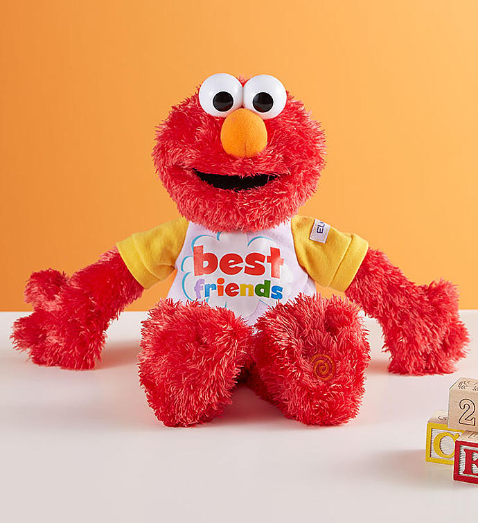 Elmo is always ready for a hug from his best friend—a special child you know! Everyone’s favorite furry red friend from Sesame Street, our talking plush Elmo wears a “Best Friends” T-shirt and says as many as eight fun phrases in his popular giggly voice. Make their day even sunnier by including a Sesame Street children’s book for learning letters, numbers, and shapes … with Elmo nearby!