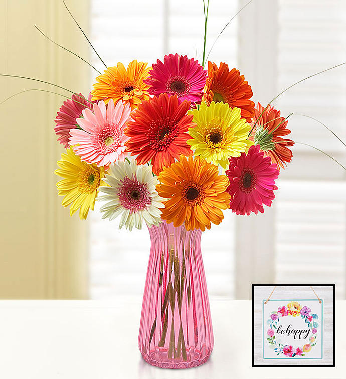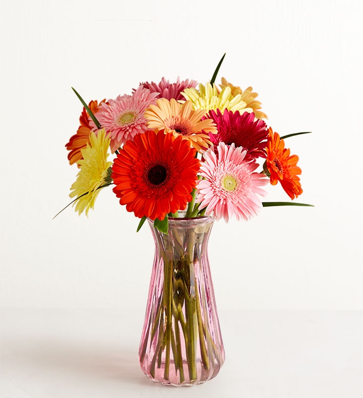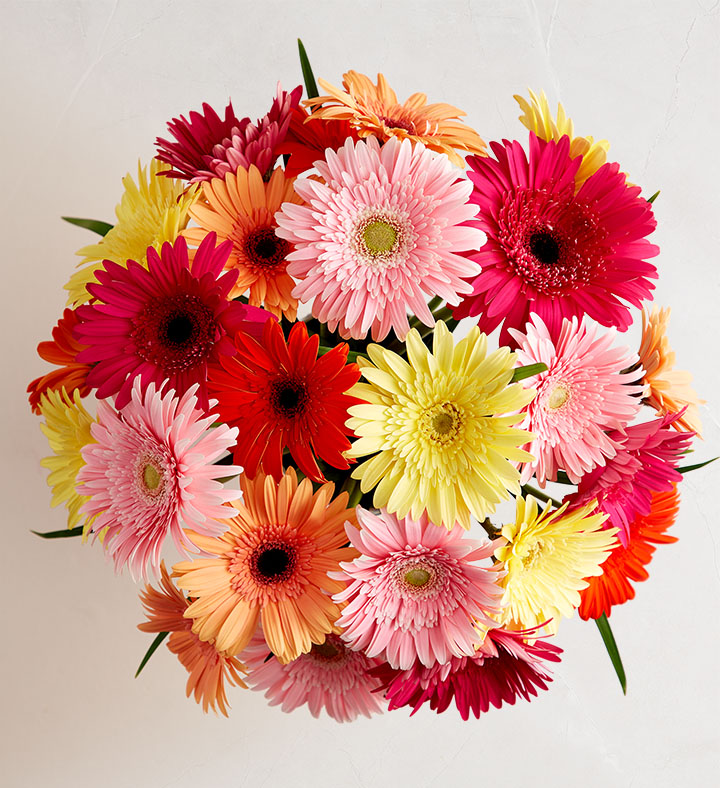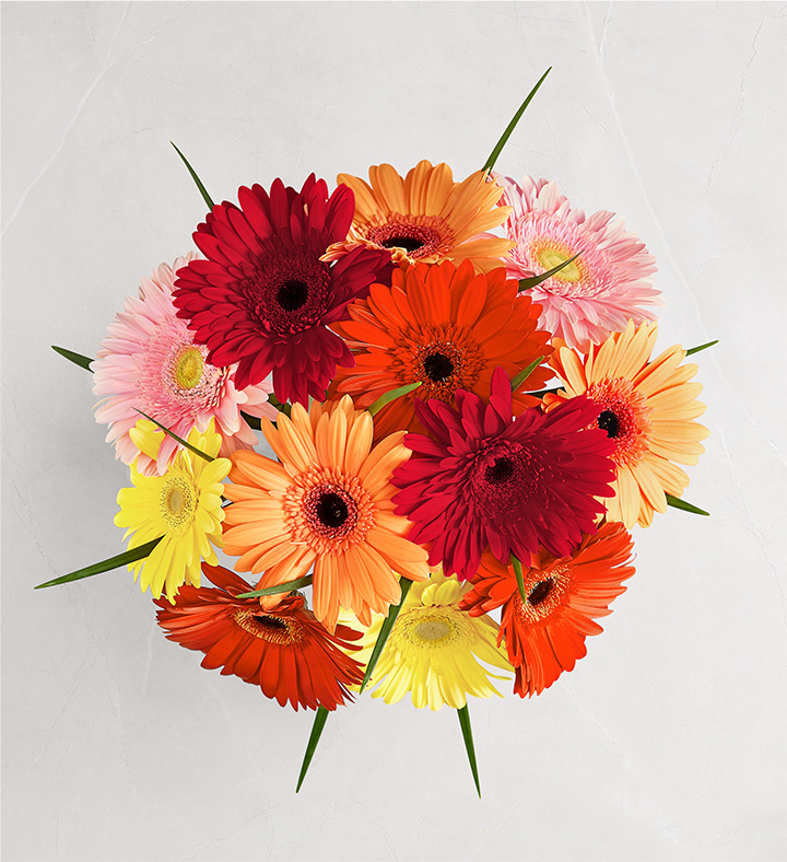 Here's a bright, colorful gift that has cheer written all over it! Our vibrant Gerbera daisies are gathered together into a beautiful bouquet, so that you can deliver a bunch of smiles for life’s special celebrations or everyday moments.
