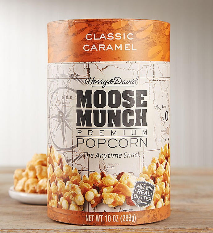 EXCLUSIVE Cuddle up for winter with our moose plush, Jasper! Designed exclusively through our partnership with Harry & David, we’ve included their signature Moose Munch® caramel with milk chocolate popcorn for a sweet surprise for all ages. Crafted with premium ingredients, this go-anywhere snack can be enjoyed by the handful around the fire, at parties, or just hanging out with friends and family.