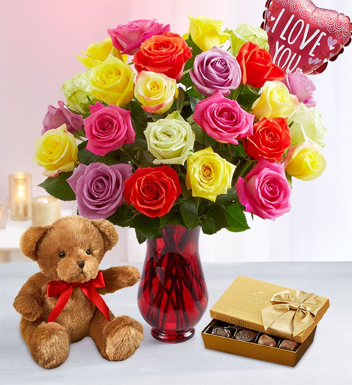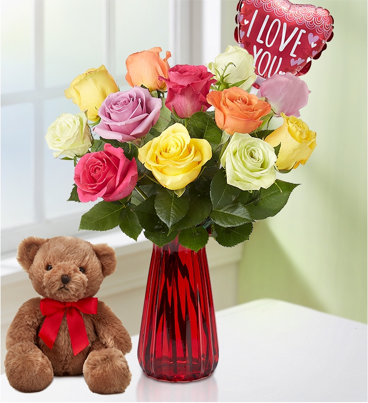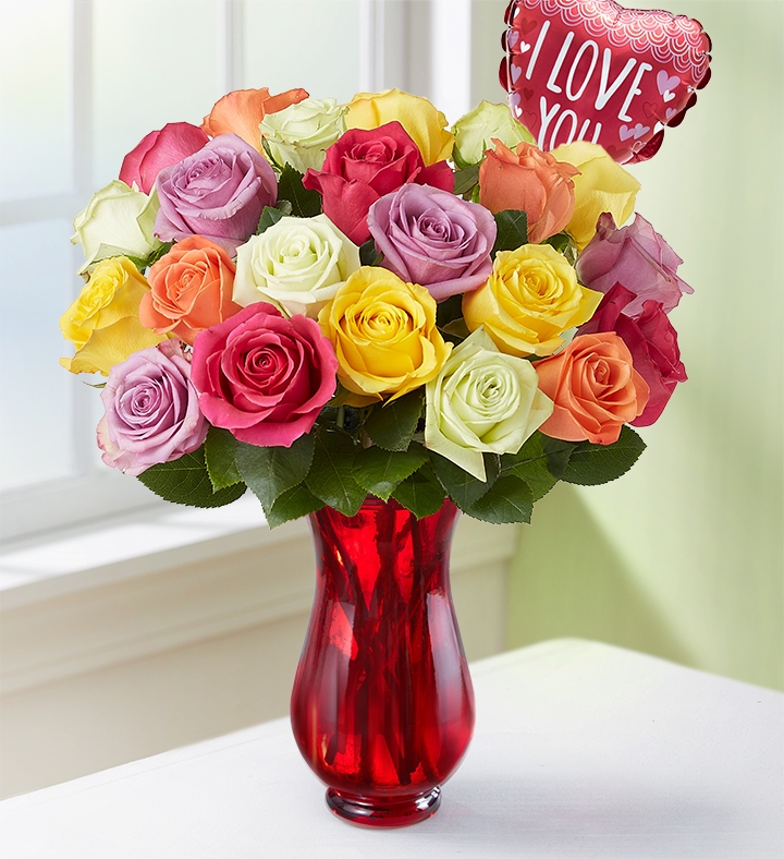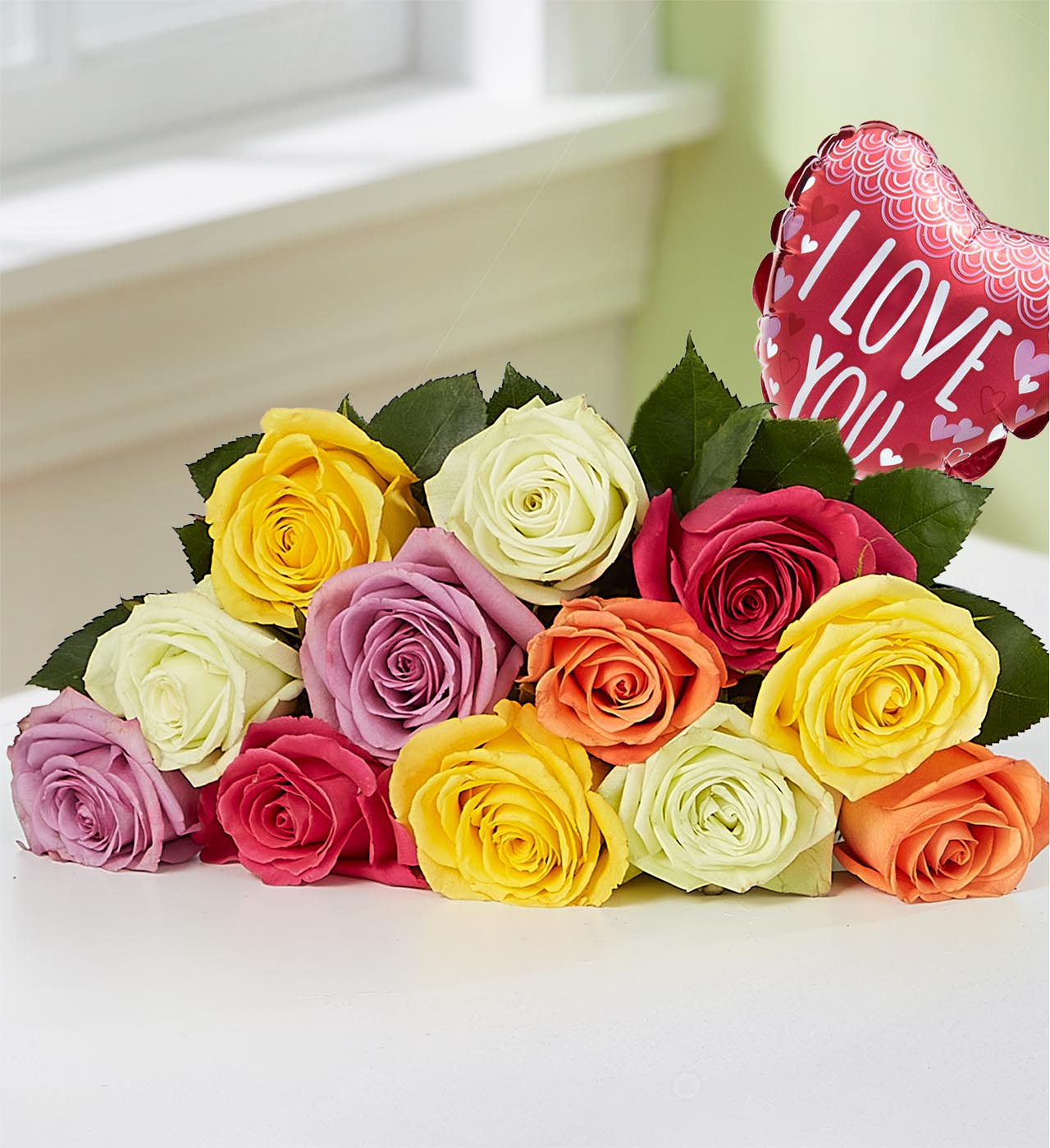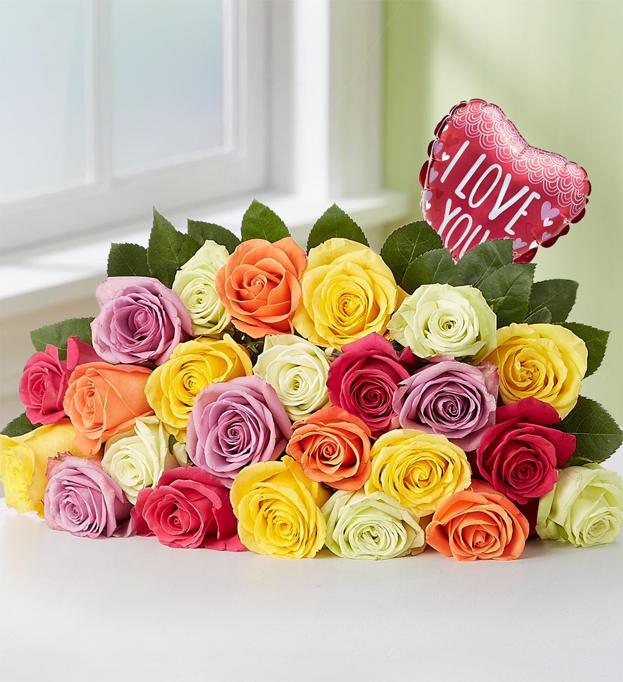 Express your affection with a rainbow of beautiful blooms. One or two dozen of our premium roses are paired with a sweet, heart-shaped balloon, it’s a gift that reveals the romantic feelings in your heart.
