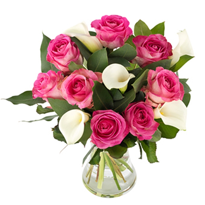 The bouquet of your dreams. Wonderful pink roses conveys a message of admiration and love. Here combined with elegant white flowers. An exquisite gift for a special someone. ** Vase is not included.**
