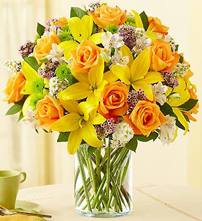 Great for any occasion, our bestselling arrangement becomes a brilliant blend of roses, lilies, alstroemeria and poms, bringing to mind a colorful European flower field.