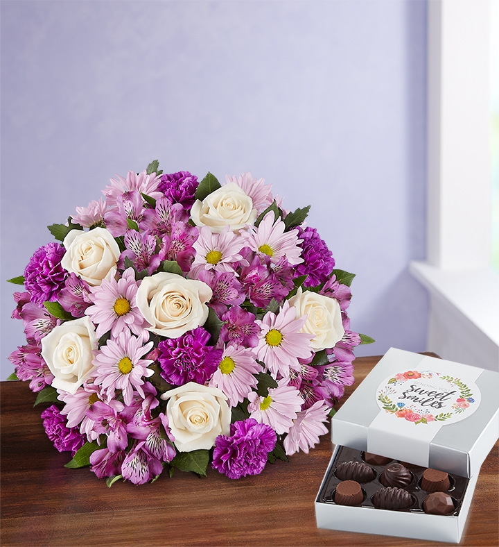 Put a smile on the face of someone very special with our fresh-from-the-garden bouquet. Soothing shades of lavender and white come together to deliver your sentiments effortlessly.