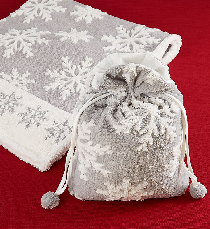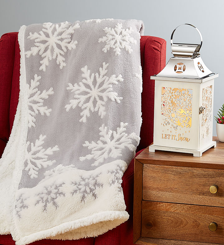 Snowy days call for snuggling up, and we’ve got just the gift. Start with a cozy throw blanket in soft grey, with a puffy white snowflake design. It’s packed in its own carry bag with matching design so you can store it in style. And when the lights are turned down low, the laser-cut “Let It Snow” wood lantern, with its charming cut-out snowflake pattern, adds plenty of ambiance. Paired together, it’s a great seasonal gift for family and friends (or yourself).