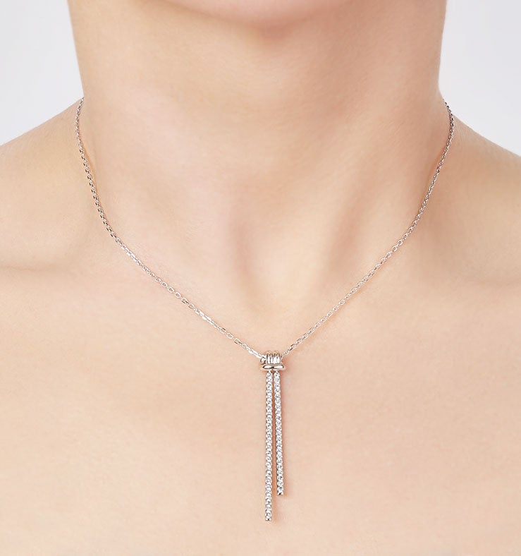 A bond that’s truly unique is sure to last a lifetime, and our glamorous necklace from Swarovski captures this sentiment perfectly. Featuring a stylish Y-silhouette with knot design, it drips with sparkling crystal pave. A knot symbolizes the unique bond between two people, making this the perfect keepsake for birthdays, anniversaries or any romantic celebration.