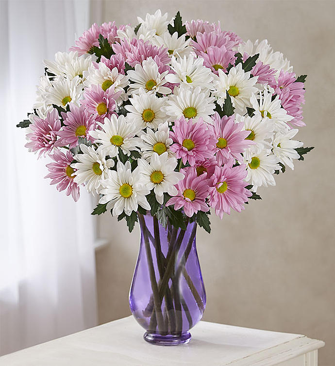 Nothing says happiness quite like our cheerful bouquet of daisies. With perky petals of fresh lavender and white, these blooms are just fun to have around. It won’t take more than these daisies to make their day!