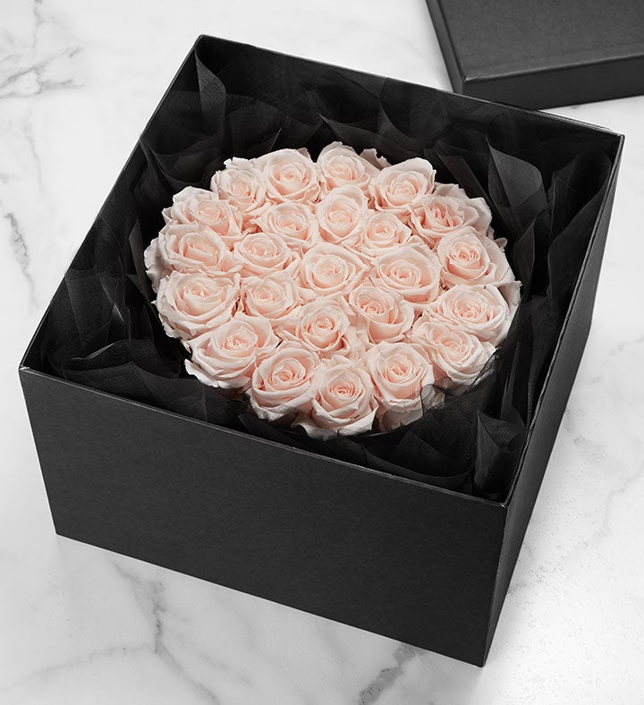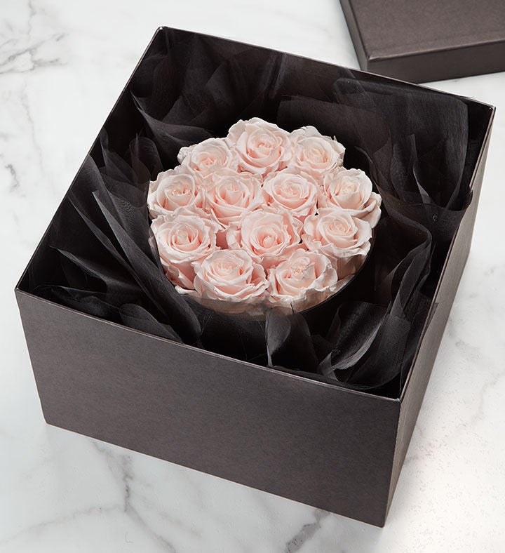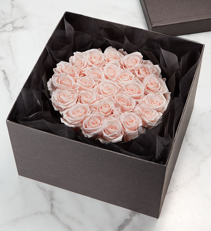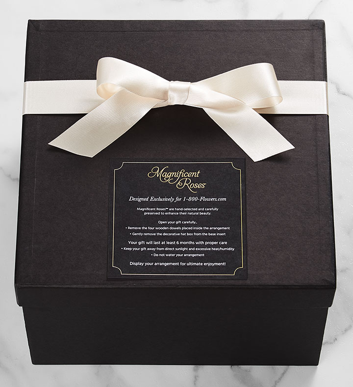 EXCLUSIVE A loving sentiment can be all it takes to bring comfort during a time of loss. Exclusively designed for 1-800-Flowers.com, these genuine roses are selected for their size and perfection, carefully preserved to maintain their exquisite beauty, and artfully arranged in a decorative, hat box-style container to express your sincere sympathy.