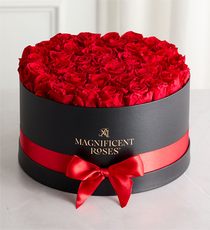 EXCLUSIVE Our red preserved roses are the essence of pure romance. Exclusively designed for 1-800-Flowers, these genuine roses are selected for their size and perfection, then carefully preserved and artfully arranged in a decorative container. It’s a gift of luxury meant for someone truly magnificent.