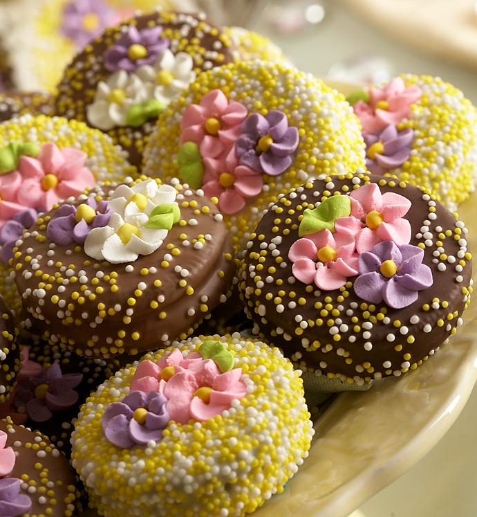 It’s her big day! Say I Love You, Mom with this cute, collectible Happy Mother's Day tin filled with 16 classic Oreo® cookies that have been hand-dipped in rich Belgian white, dark or milk chocolate. Decorated with sweet Spring-themed floral confections and yellow and white non-pareils, they’re totally scrumptious. Send your own personal message to a mom you love. 16 Oreo® Cookies. This chocolate cookie tin needs special handling that requires Overnight shipping.