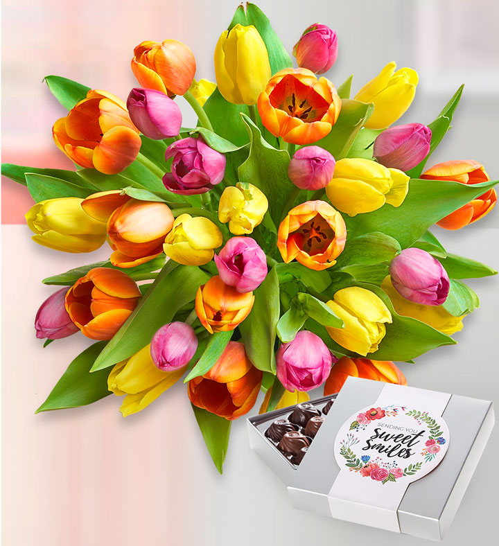 Brighten their day with the vibrant beauty of tulips. Whoever they’re for, whatever the reason, our cheerful spring blooms are just the gift to make them smile.