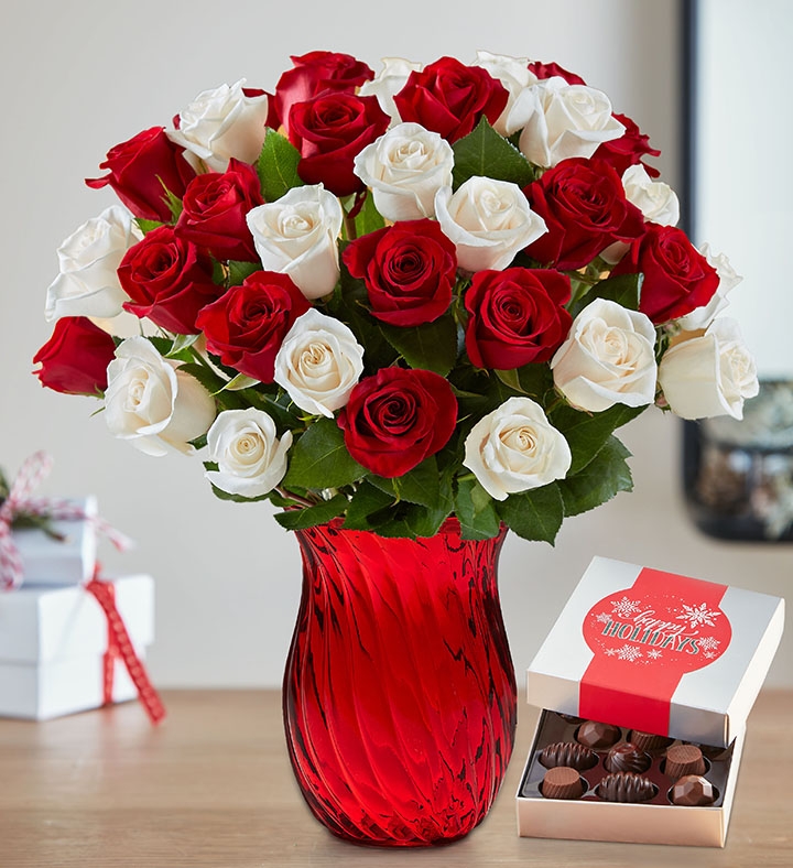 Capture the excite-mint of the season with our fresh peppermint rose bouquet. Inspired by the classic peppermint pinwheel candy, our festive red and white blooms come in hearty gatherings of 18 or 36 stems. It’s a special holiday treat that’s sure to warm the hearts of family & friends alike.