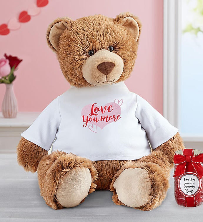 EXCLUSIVE A new addition to our exclusive Lotsa Love® collection, Tommy Teddy is the best way to send hugs and kisses to someone you love. Standing two feet tall, this cuddly bear wears a heart T-shirt. Choose the non-personalized version or customize your gift to create a truly unique keepsake. And for an extra surprise, how about pairing our plush pal with some yummy red Gummy Bears? They’re the perfect addition to an already sweet sentiment!