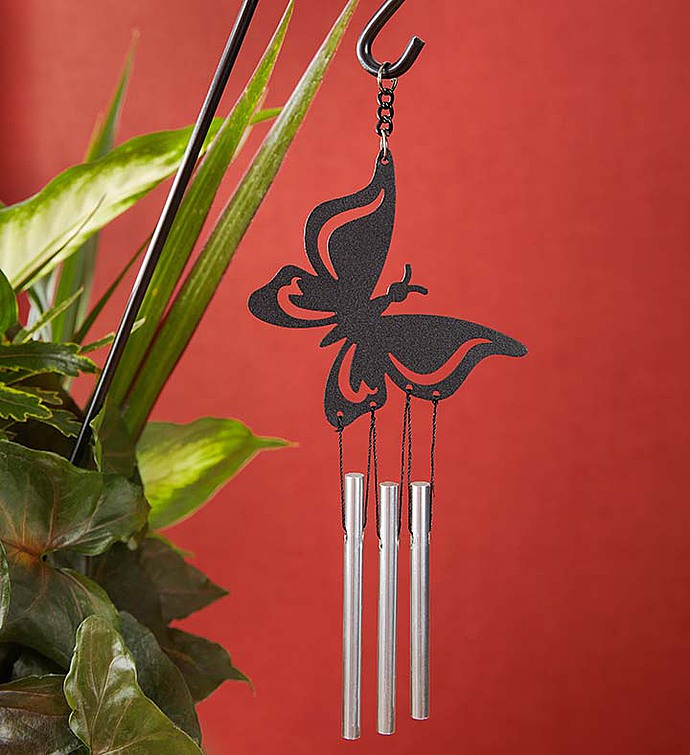 Our lush dish garden is full of natural beauty! A dark wood woven basket holds a variety of blooming and green plants for a truly one-of-a-kind gift. Paired with our hanging butterfly chime, this charming surprise brings a sense of tranquility to any indoor or outdoor space.