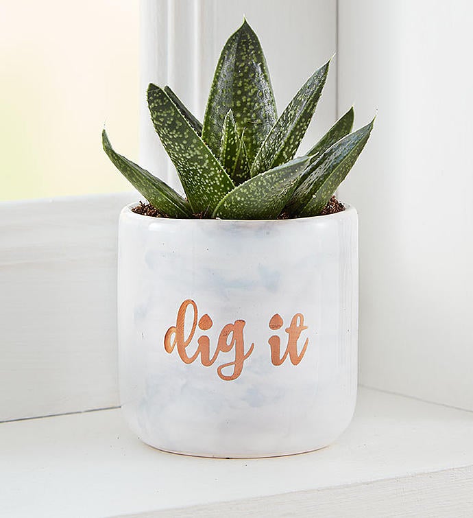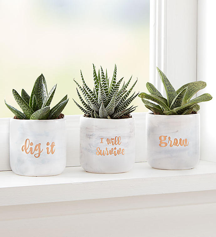 As if a trio of mini succulents weren’t fun and thoughtful enough, these three low-maintenance favorites arrive in trendy ceramic containers, each with a witty inspirational message in gold lettering. Send to someone with as much of a sense of humor as a sense of style (no green thumb necessary).