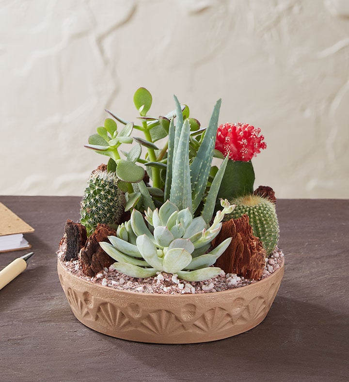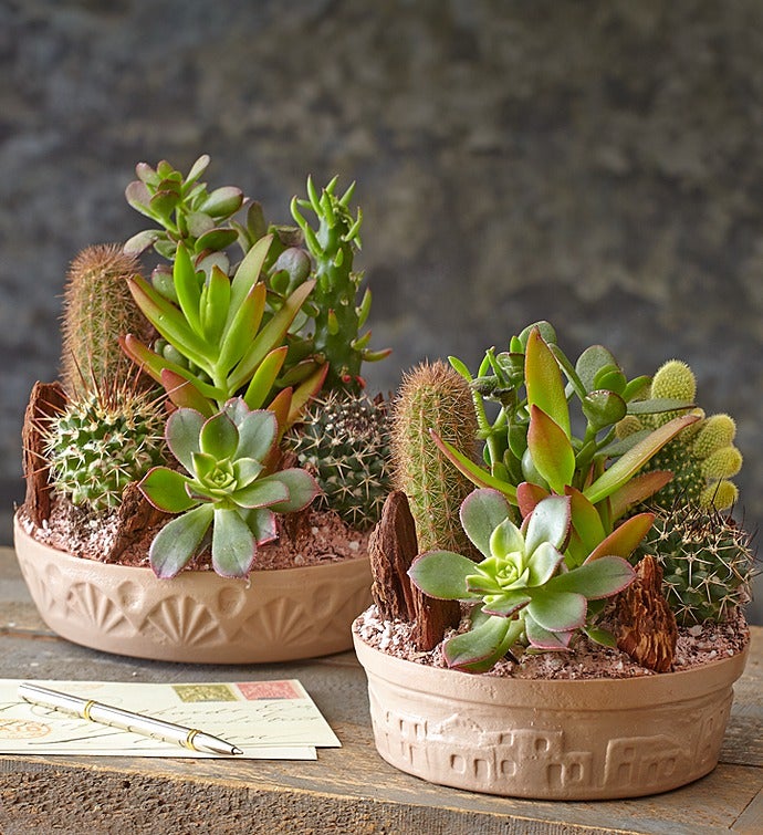 Exclusive They just might be stuck on you after this gift. Our garden of cacti and succulents arrive in an authentic Southwest-inspired bowl for a birthday surprise that’ll stick with them for a very long time. Send this slice of desert delight to their door for endless smiles.
