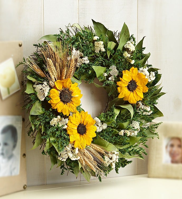 Delight someone special with our charming preserved sunflower wreath! Each one is individually handcrafted and truly one-of-a-kind, accented with beaming golden sunflowers that instantly brighten up any home. It’s a beautiful expression of your feelings whether you’re saying “thanks”, welcoming them into their new home or looking to spread a little sunshine!