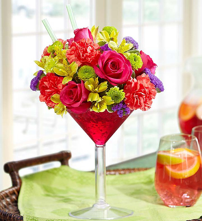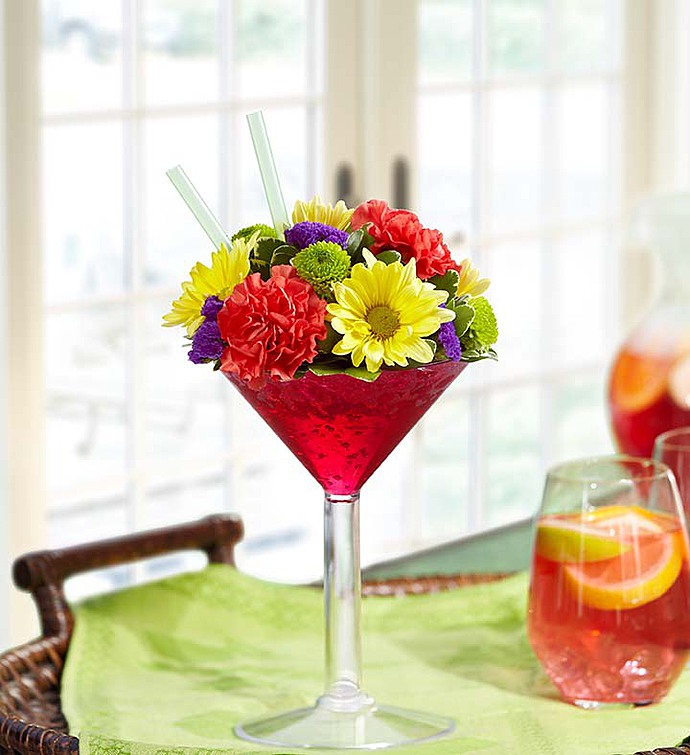EXCLUSIVE Spice things up with our fresh floral version of the popular cocktail! A vibrant mix of roses, carnations and more are hand-gathered, then served up inside a chic martini glass to start every celebration with a smile!