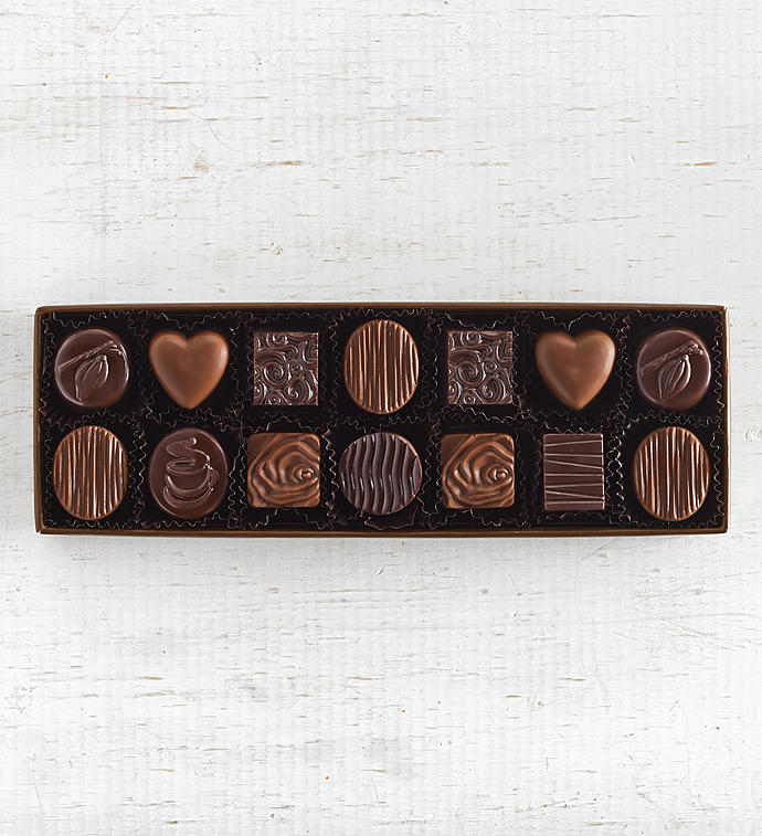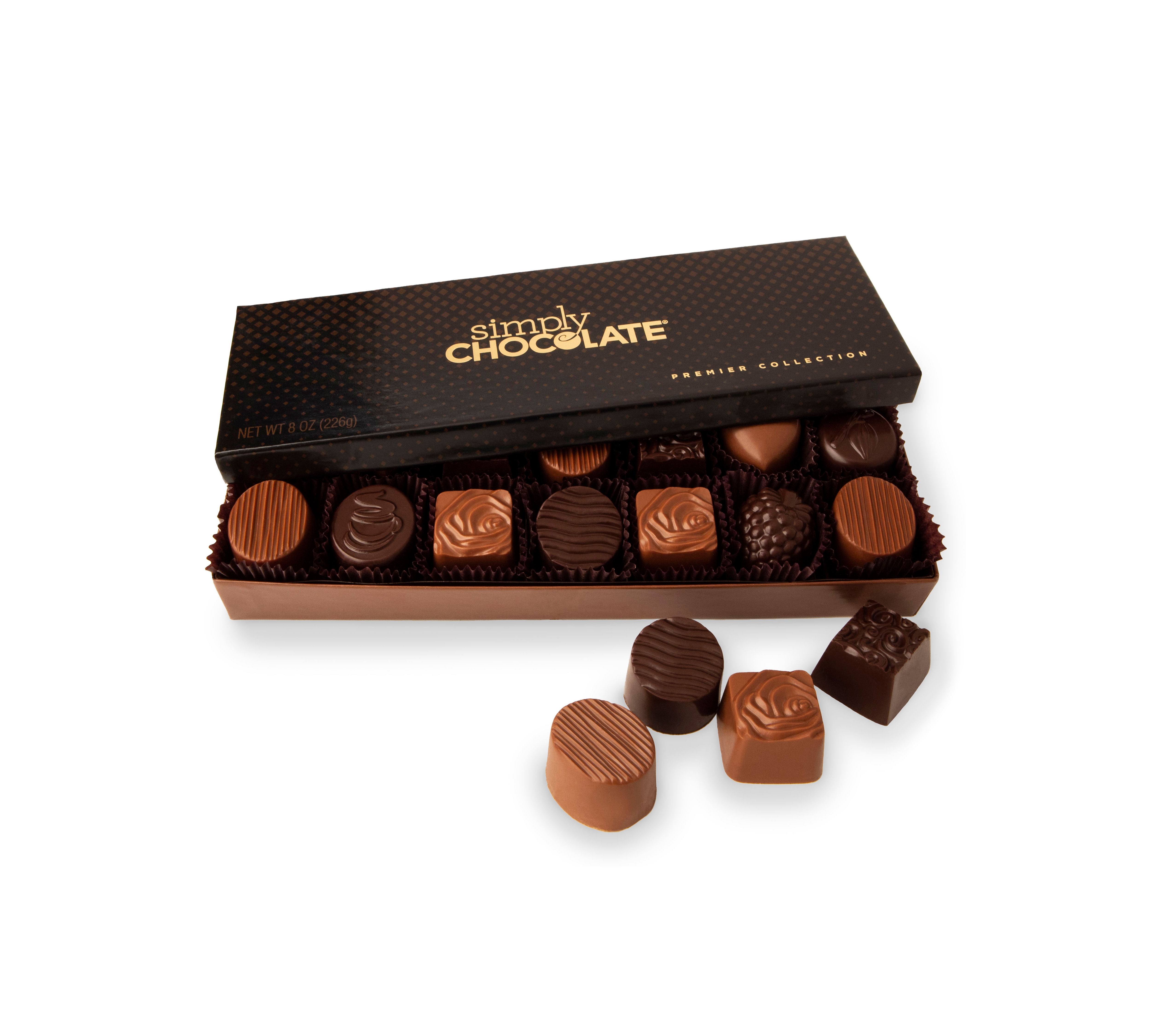 Our team at Simply Chocolate has spent countless hours working with an artisan chocolatier to perfect this tantalizing assortment. These artful chocolates feature mouth watering flavors like strawberry rhubarb, sea salt peanut butter, mocha cream, hazelnut, and caramel coconut. All are beautifully presented in a luxurious gift box. Each piece has a design on top that makes it as good to look at as it is to devour. This is a simply wonderful fine chocolate experience!