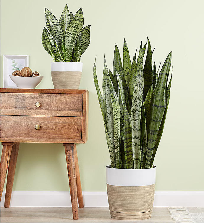 With its stiff, upright growth, our Sanseveria Zeylanica is downright architectural in its beauty. Glossy, emerald-green leaves with light green horizontal striations, it’s not only statement-making, but extremely Win-win!