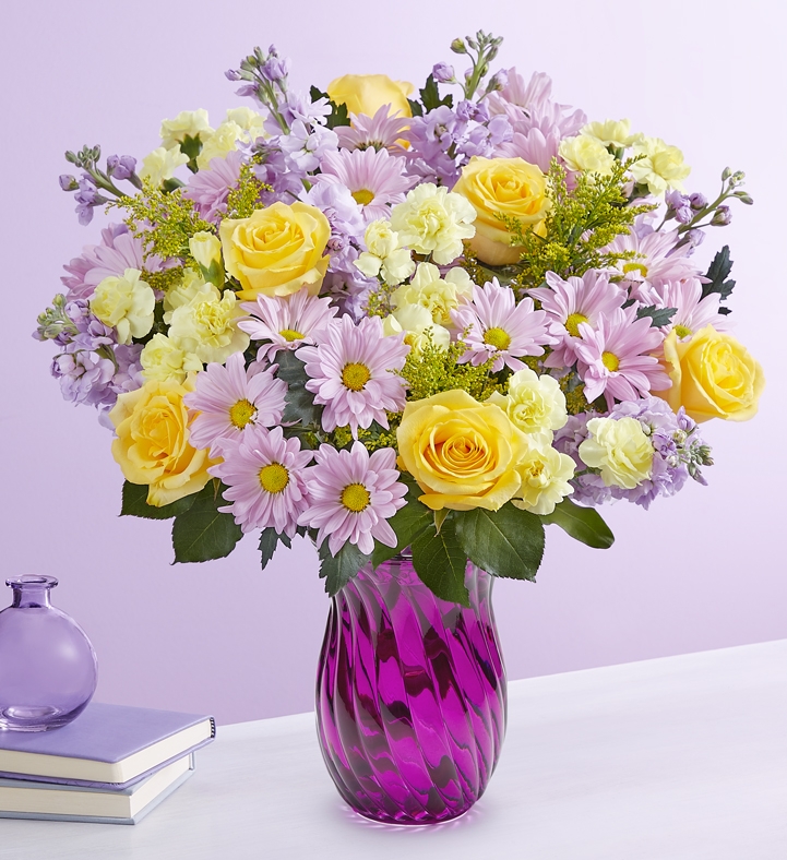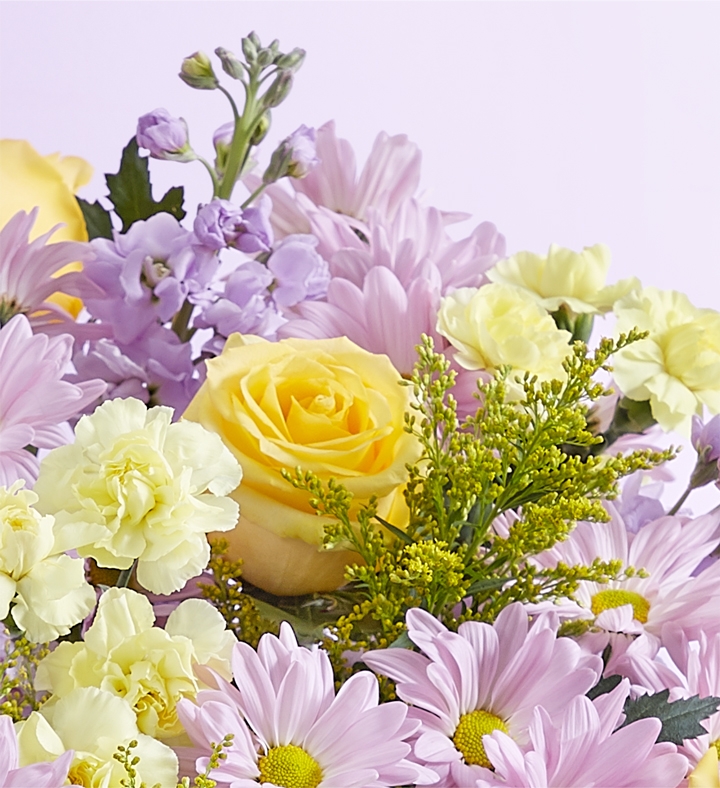 The season of rebirth and renewal is also the season for reconnecting with the ones we love, letting them know we’re thinking of them. Rekindle a friendship—or even a romance—with our delightful bouquet in shades of yellow and lavender.