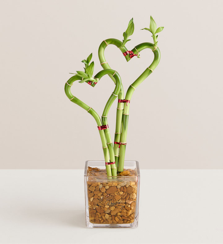 A traditional symbol of good fortune, our bamboo plant will have your sweetheart feeling lucky! Fresh bamboo expertly coaxed into a beautiful single, double or triple heart design.