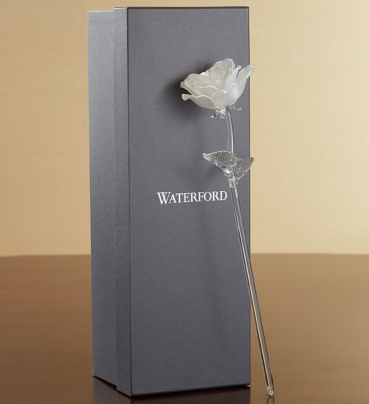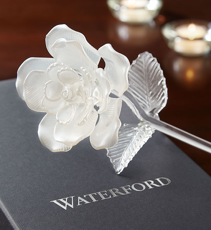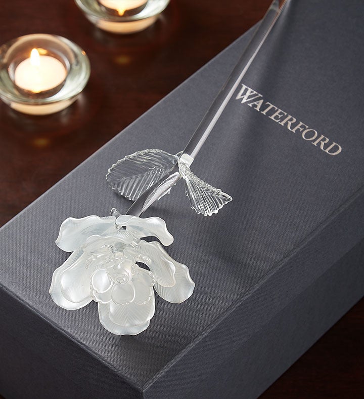 Imagine the look on their face when this beautiful keepsake arrives. Our white, pearlized glass rose from Waterford is etched in stunning detail to create a gift of timeless elegance. It’s perfect for celebrating a communion, baptism, wedding or other special occasion—or any day you want to let them know how much you care.