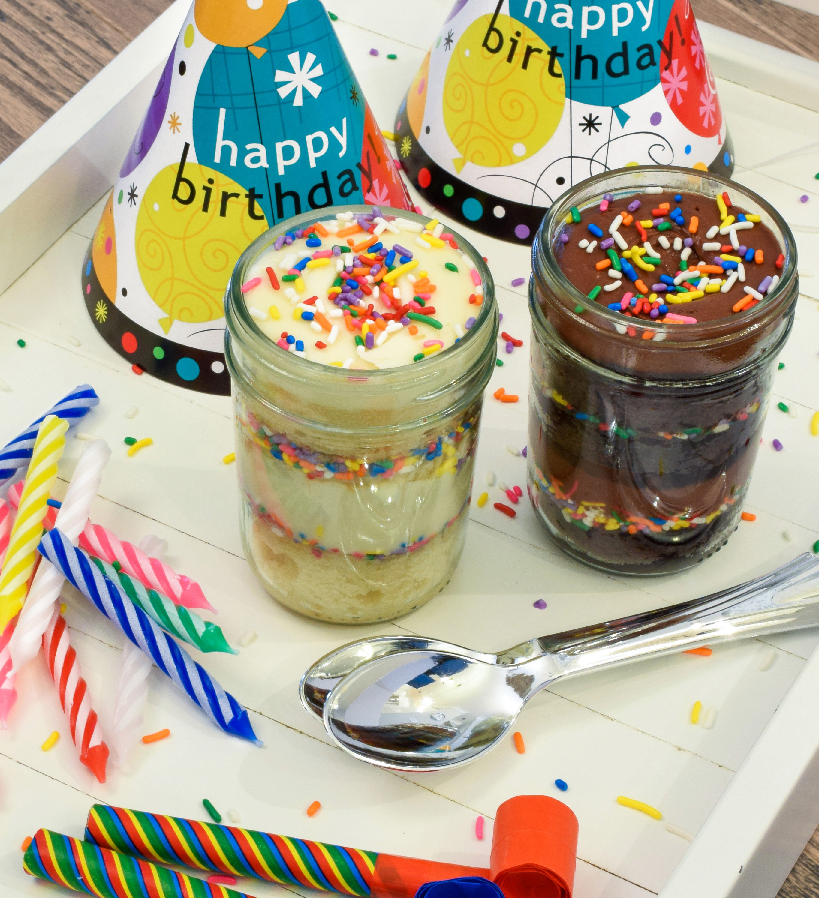 Send an instant birthday party with this Birthday Cupcakes in a Jar Gift Set. Featured on ABC’s Shark Tank, each of these unique ready to eat cupcake jars contains the equivalent of 2 moist and decadent cupcakes layered with a variety of fillings and topped with the famous frosting recipe of Wicked Good's founders, mom & daughter, Tracy and Dani. The Birthday Box also contains birthday party hats, birthday party blower favors, birthday candles, and a set of silver spoons. Choose either the 2 pack box or the 4 pack box.