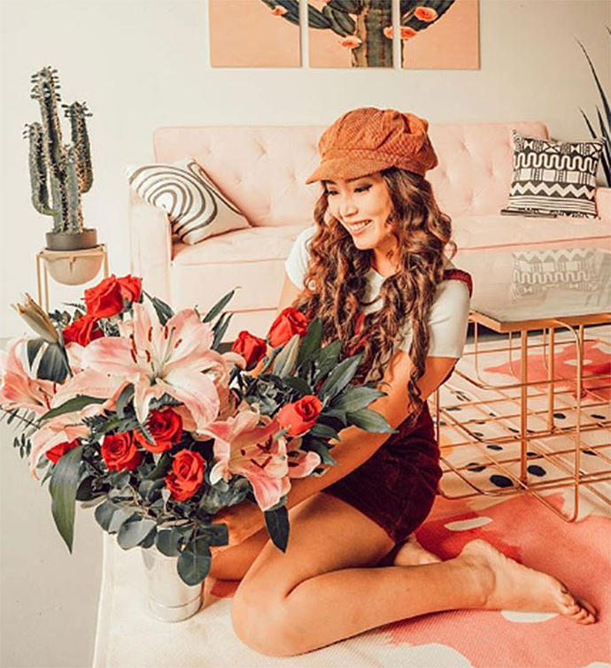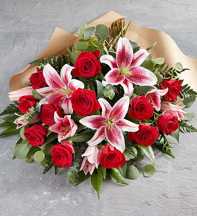 JUST GATHERED! When there’s no resisting expressing how you feel: our Irresistible bouquet. Softly gathered blooms of pink and red for undeniable allure, with kisses of white and green to add to the romance. Don’t be shy… this one says it all.