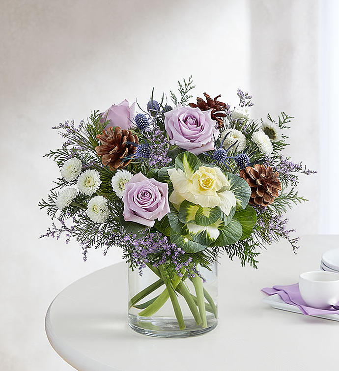 Anyone who appreciates the play of moonlight on freshly fallen snow will love our new seasonal bouquet. Fresh blooms in moonlight hues of white, lavender and purple, hand-arranged in a classic clear glass vase for a cozy, modern feel. What a stunning way to let someone know you’re over the moon about them.